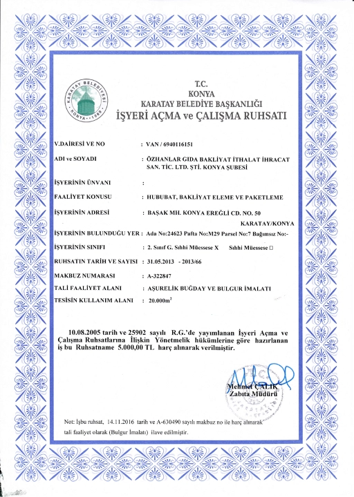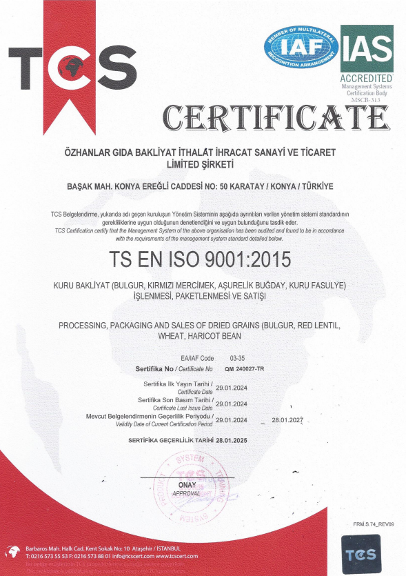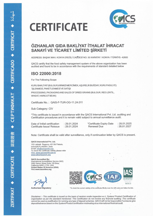 Özhanlar Gıda Bakliyat İth. İhr. San. ve Tic. Ltd. Şti., 1988 yılında Hacı Seyfettin Özhan tarafından kurulmuştur. Sürekli büyüyen firmamız, artan üretim ve istihdam ihtiyaçları doğrultusunda 2011 yılında Konya'da yeni fabrikasını hizmete açmıştır. Bulgur, aşurelik buğday, mercimek, ceriş, fasulye ürün grubu ile eleme ve paketleme tesislerini modern bir anlayışla yapılandırmıştır.