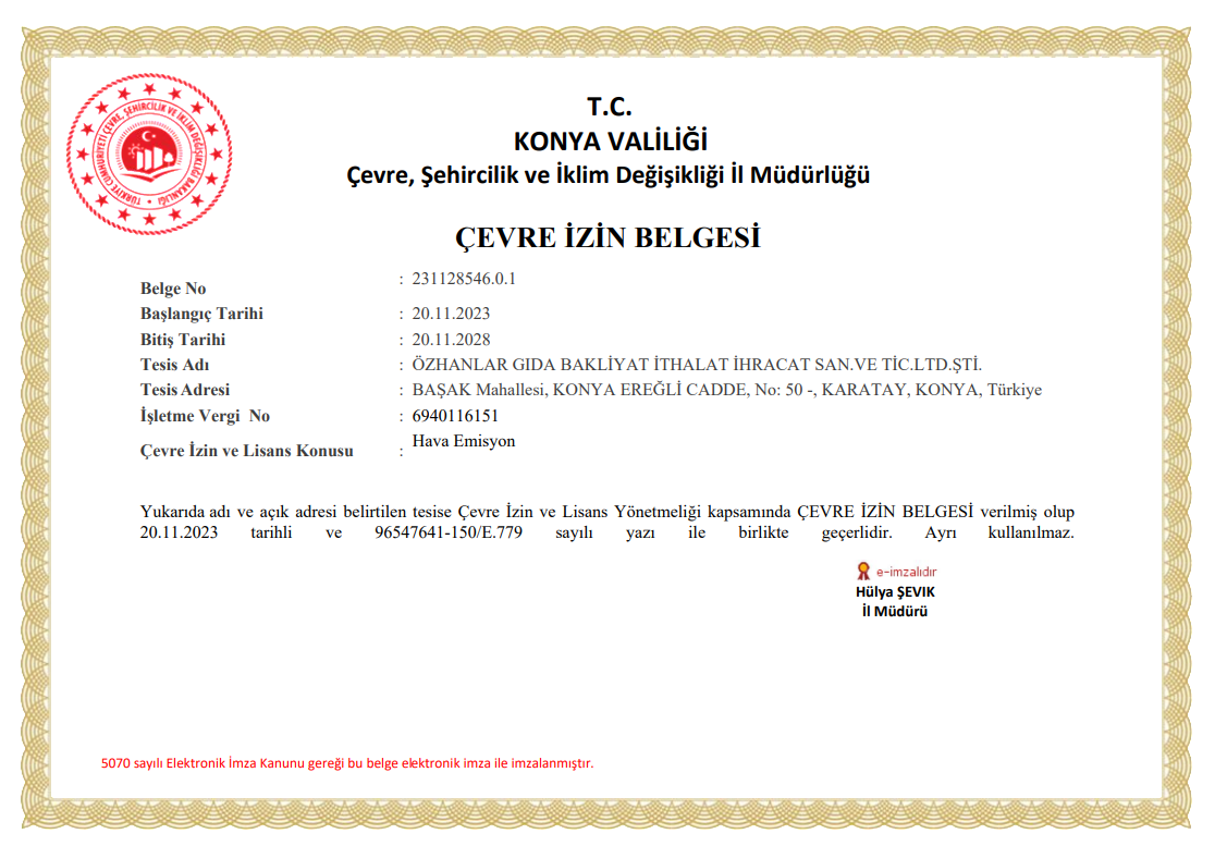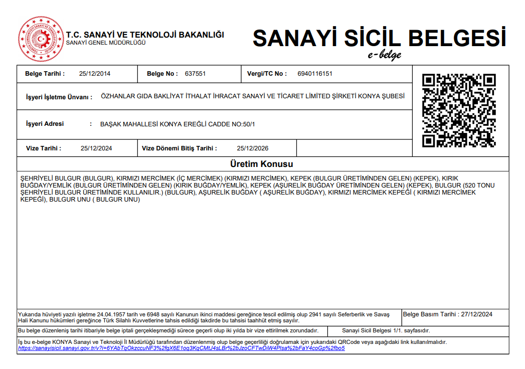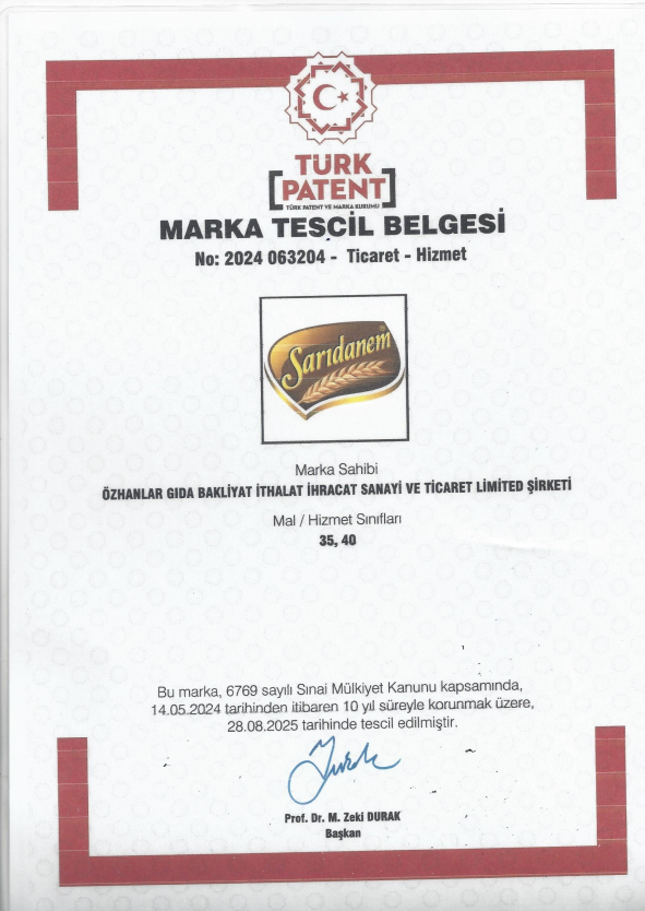 Firmamız, 45.000 m2 açık alan 19.000 m2 kapalı üretim sahasında günlük 150 ton bulgur, 120 ton mercimek, 140 ton aşurelik buğday üretiminin yanı sıra, günlük 400 ton şeker paketleme 300 ton bakliyat paketleme ve 220 ton bakliyat eleme kapasitesine ulaşmış bulunmaktadır. Bugün, Özhanlar ve Sarıdanem markalarıyla sektörde güçlü bir konum elde etmiş 42 bin ton hububat depolama silolarıyla da sektörde önemli bir marka pozisyonuna ulaşmış bulunmaktadır.
