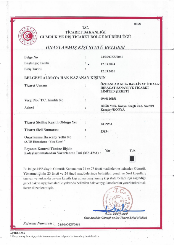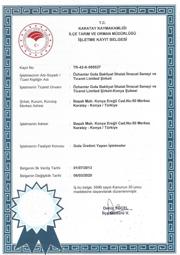 Mutlak müşteri memnuniyetiyle sektörde fark yaratmak; alanındaki tüm gelişmelere ve yeniliklere uyum sağlamaktır. İşletmemizin misyonu, İç Anadolu’dan sofralara sağlıklı ve lezzetli ürünler taşımaktır.